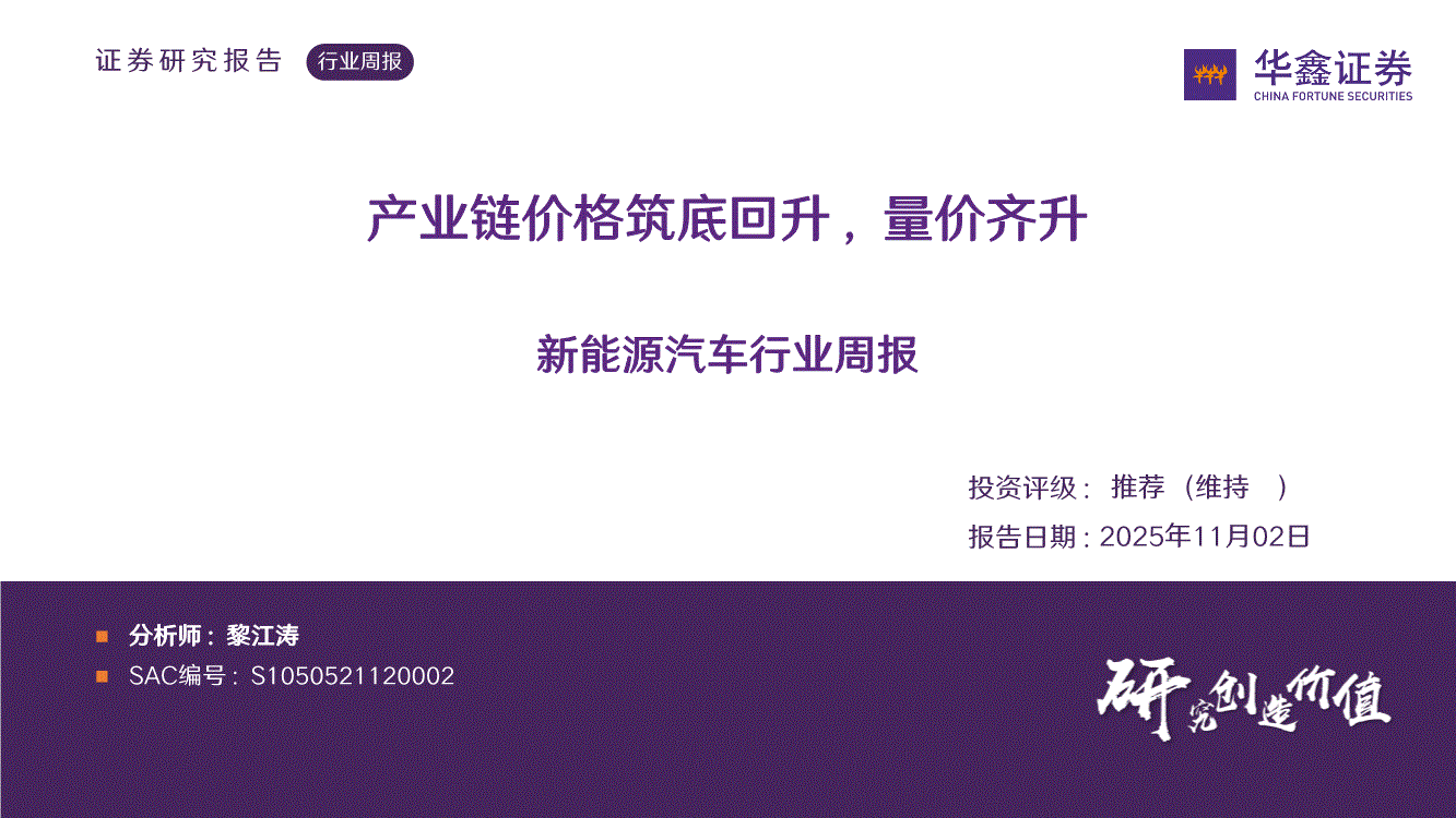 新能源汽车行业研报:华鑫证券-新能源汽车行业周报:产业链价格筑底回升,量价齐升-251102
