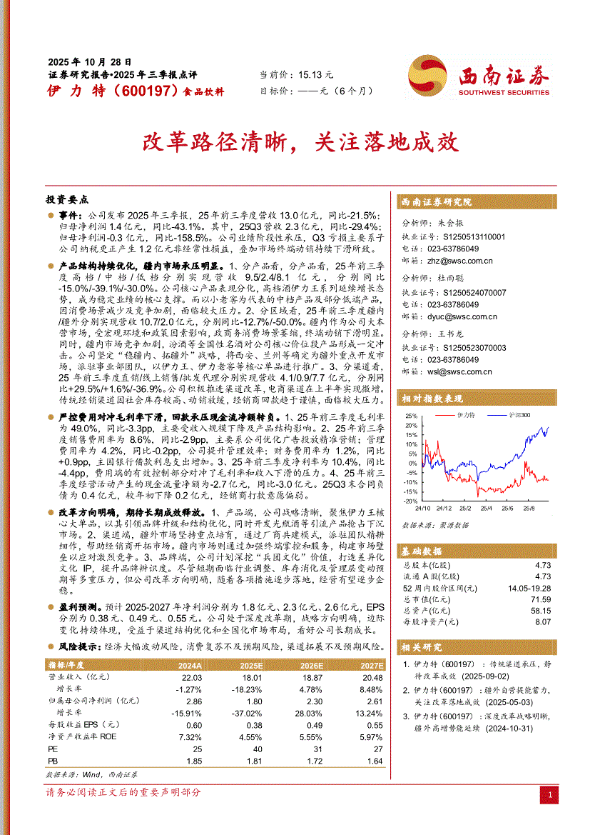 伊力特研报:西南证券-伊力特-600197-改革路径清晰,关注落地成效-251028