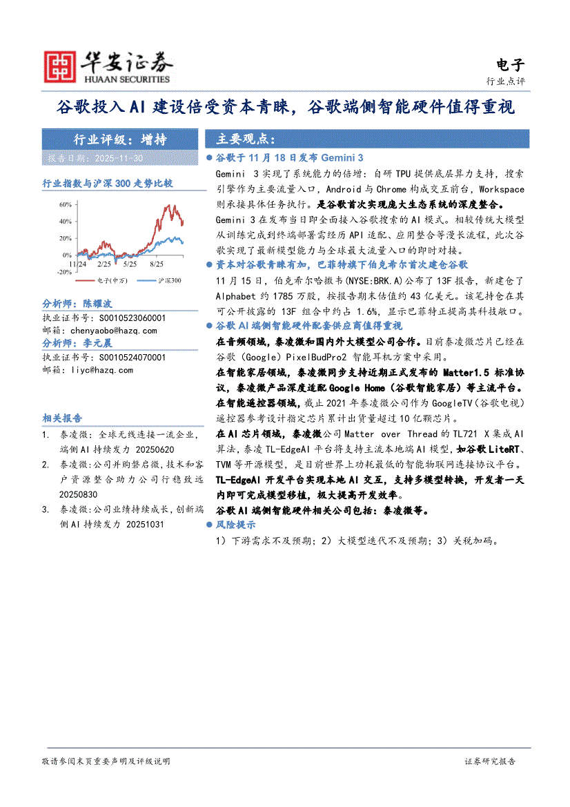 电子行业研报:华安证券-电子行业:谷歌投入AI建设倍受资本青睐,谷歌端侧智能硬件值得重视-251130