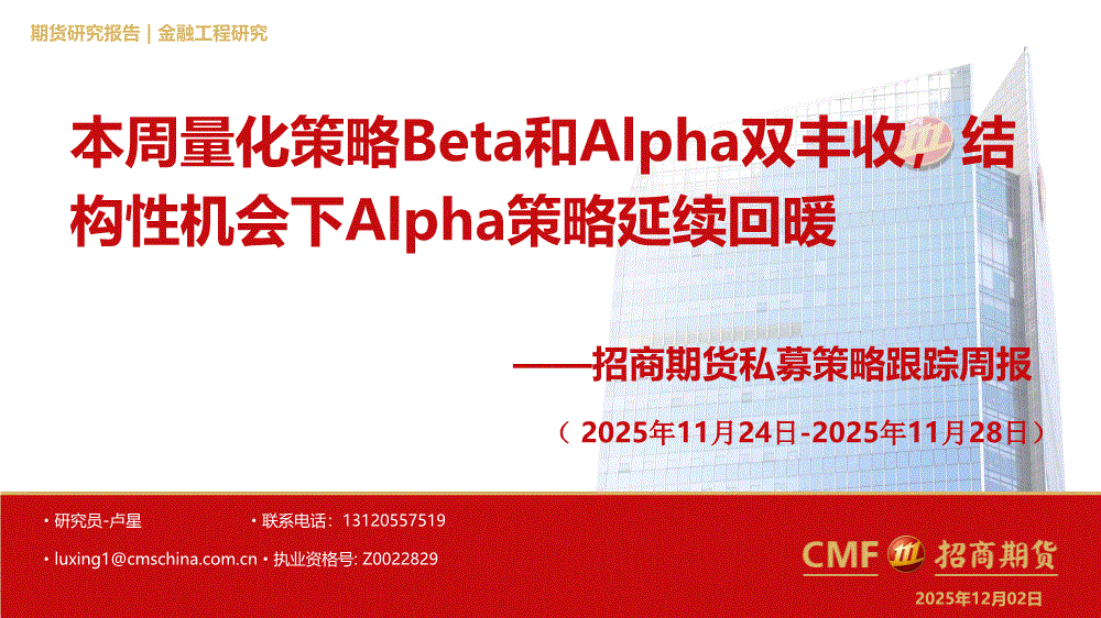 研报:招商期货-私募策略跟踪周报:本周量化策略Beta和Alpha双丰收,结构性机会下Alpha策略延续回暖-251202