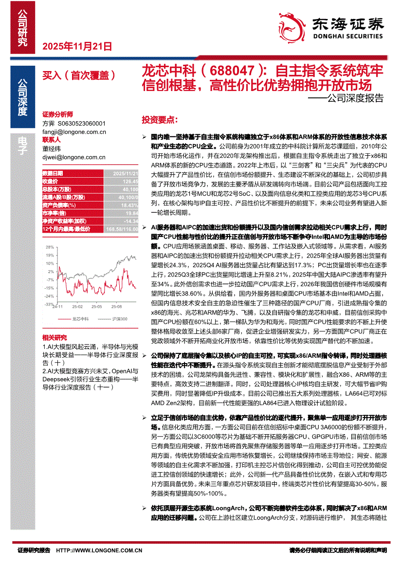 龙芯中科研报:东海证券-龙芯中科-688047-公司深度报告:自主指令系统筑牢信创根基,高性价比优势拥抱开放市场-251121