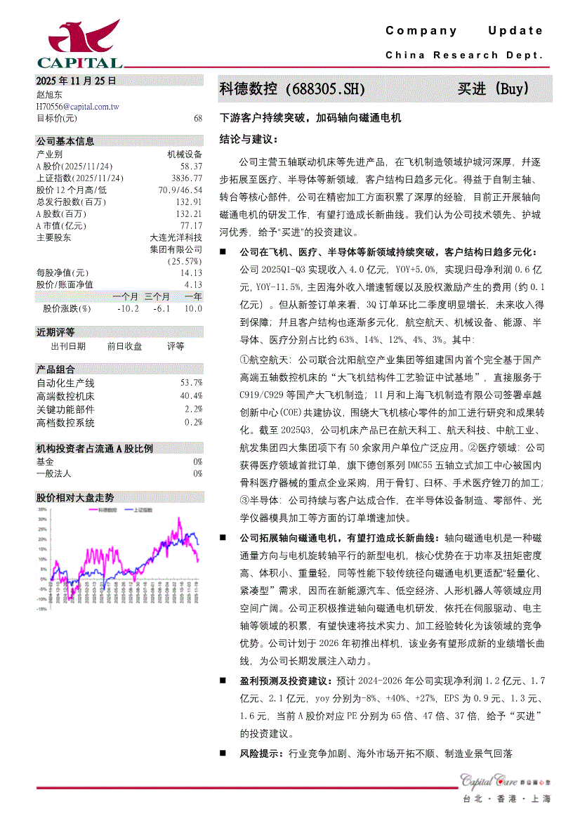 科德数控研报:群益证券-科德数控-688305-下游客户持续突破,加码轴向磁通电机-251125