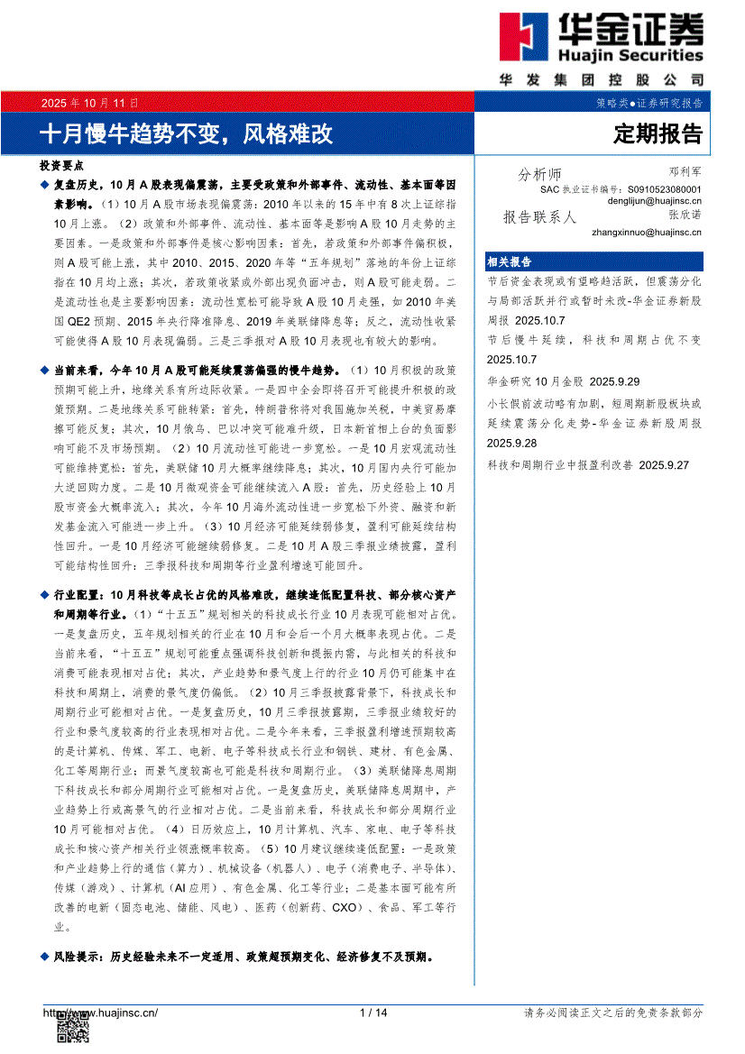研报:华金证券-十月慢牛趋势不变,风格难改-251011
