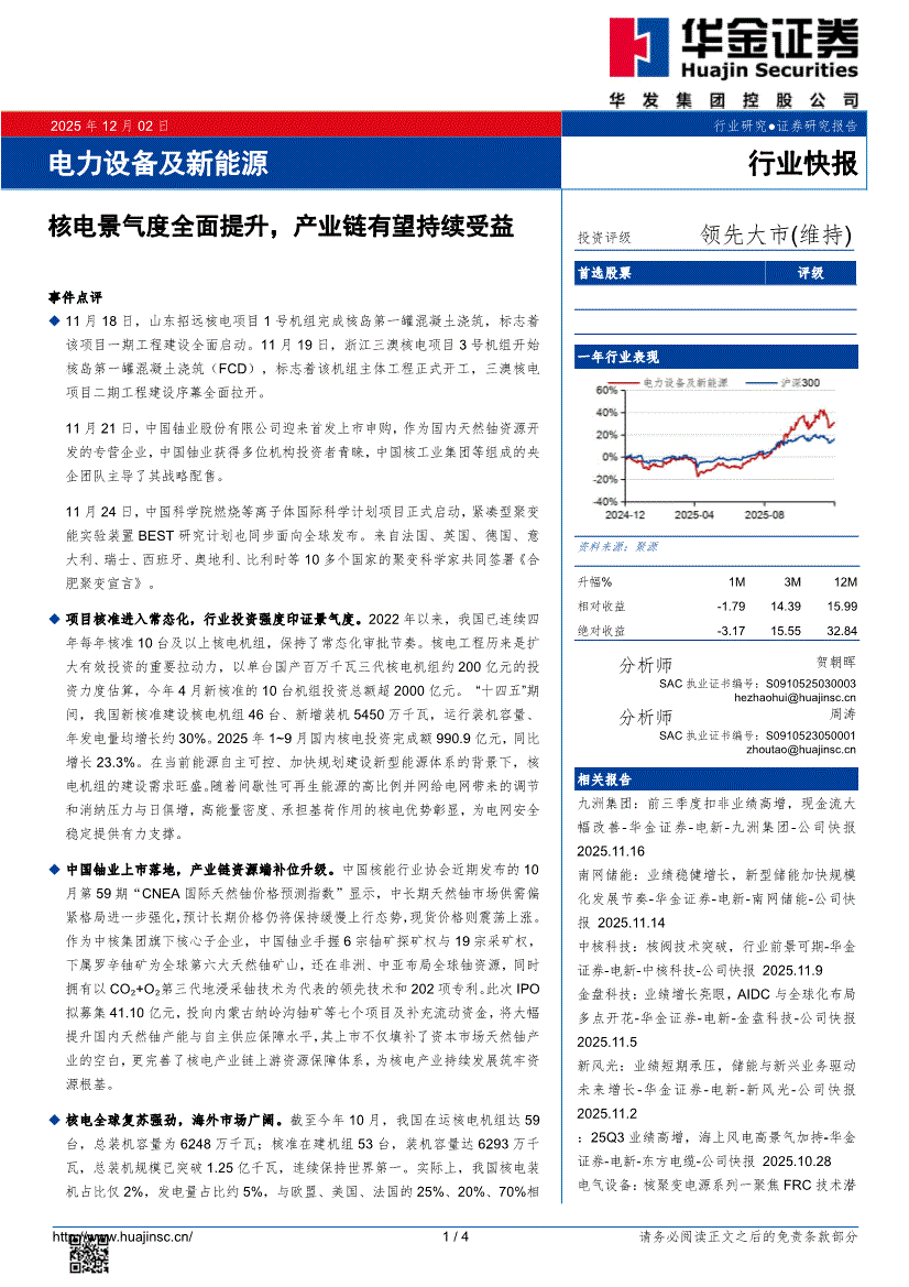 电力设备及新能源行业研报:华金证券-电力设备及新能源行业:核电景气度全面提升,产业链有望持续受益-251202