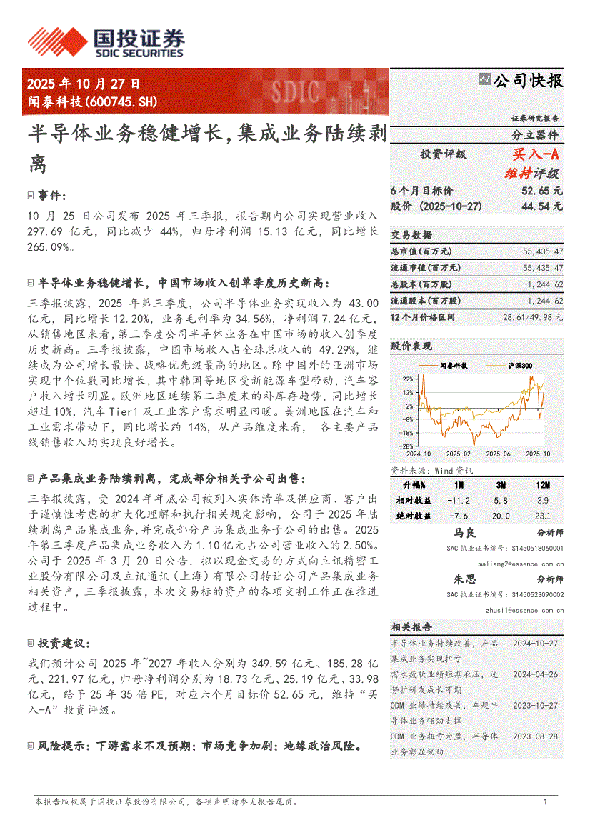 闻泰科技研报:国投证券-闻泰科技-600745-半导体业务稳健增长,集成业务陆续剥离-251027