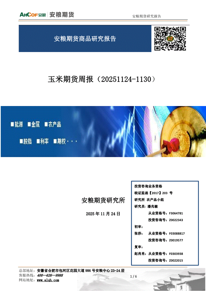 研报:安粮期货-玉米期货周报:综述,单边上行趋势难续,谨防前高受阻-251124