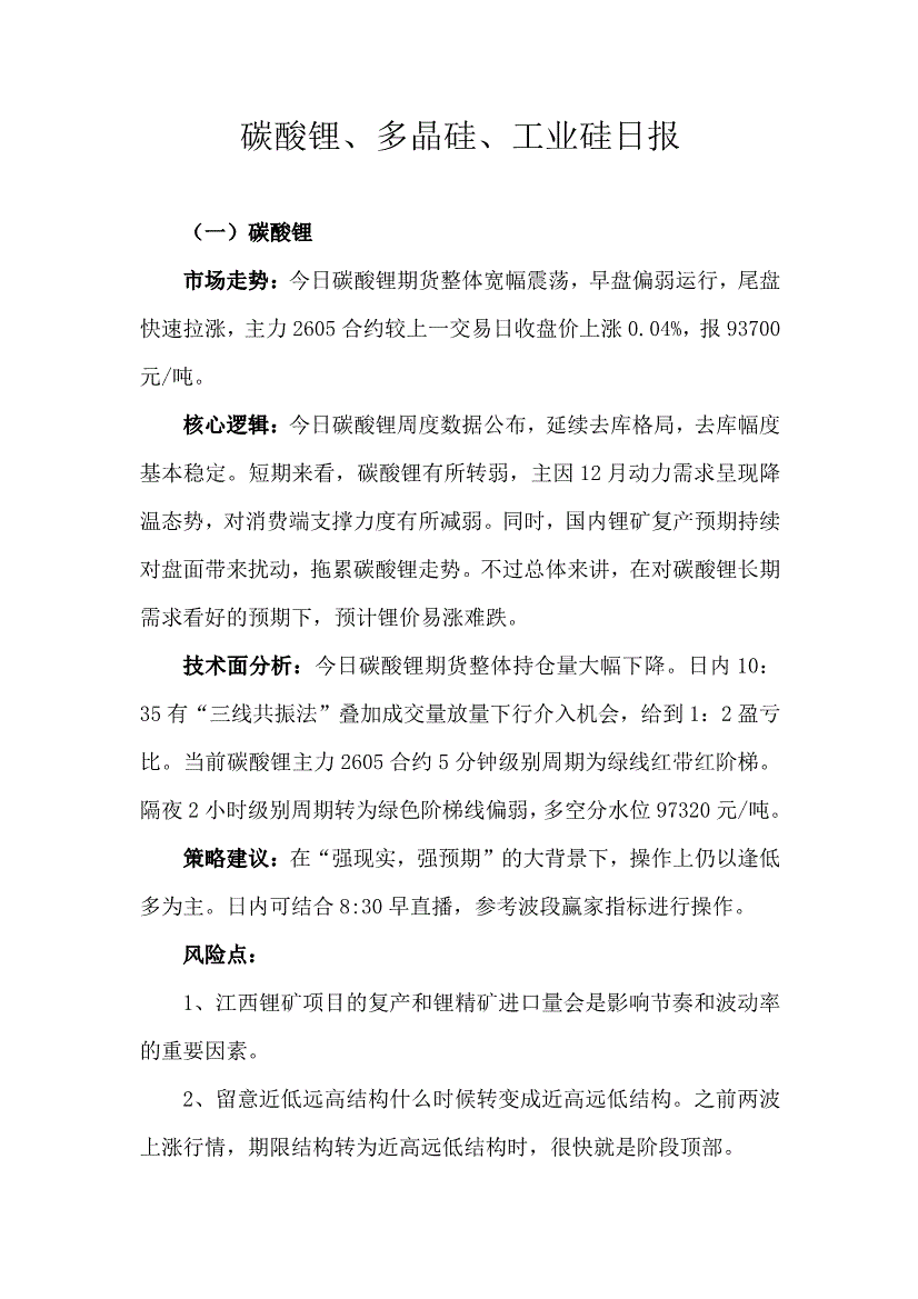 研报:天富期货-碳酸锂、多晶硅、工业硅日报-251204