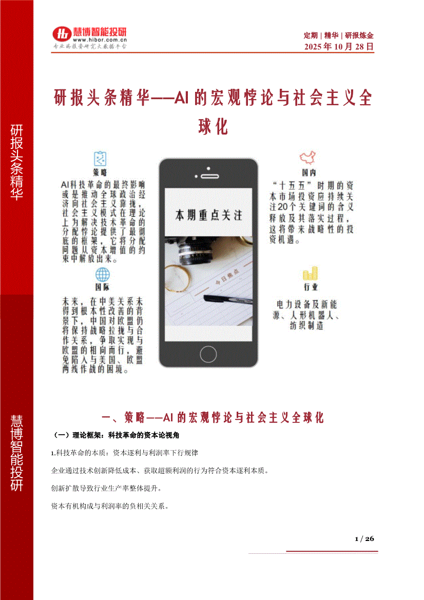 研报:慧博智能投研-慧博研报炼金之研报头条精华:AI的宏观悖论与社会主义全球化-251028