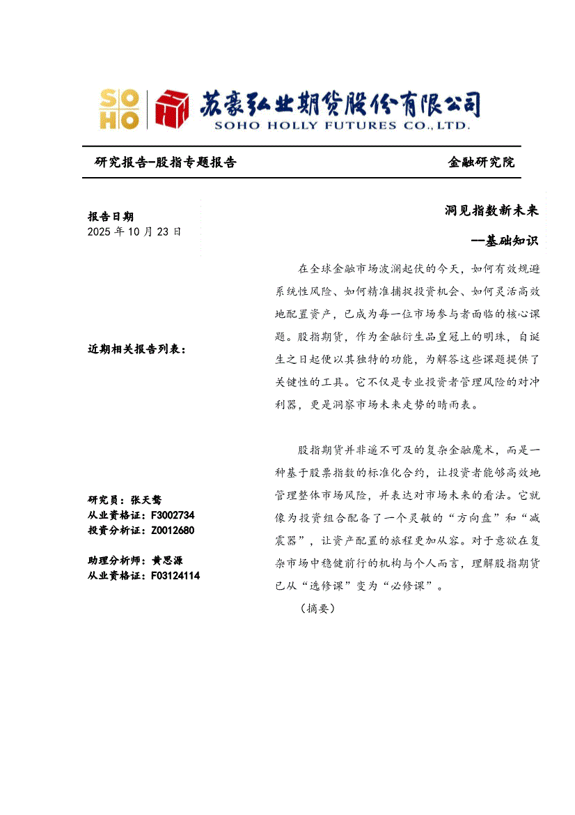 弘业期货-股指专题报告:洞见指数新未来~基础知识-251023