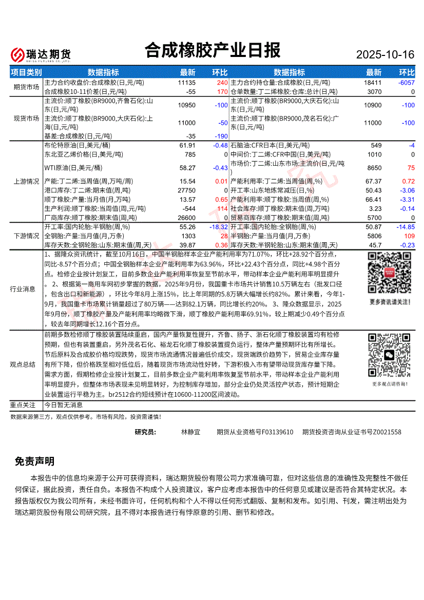 银河期货-丁二烯橡胶每日早盘观察-251010