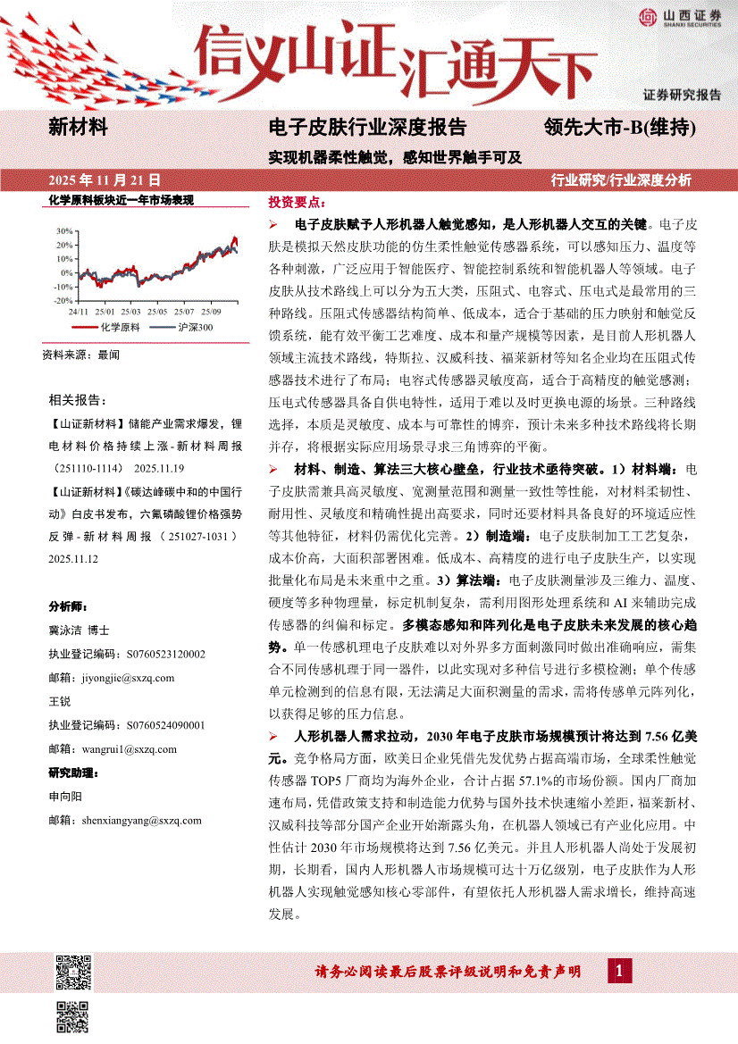 电子皮肤行业研报:山西证券-电子皮肤行业深度报告:实现机器柔性触觉,感知世界触手可及-251121