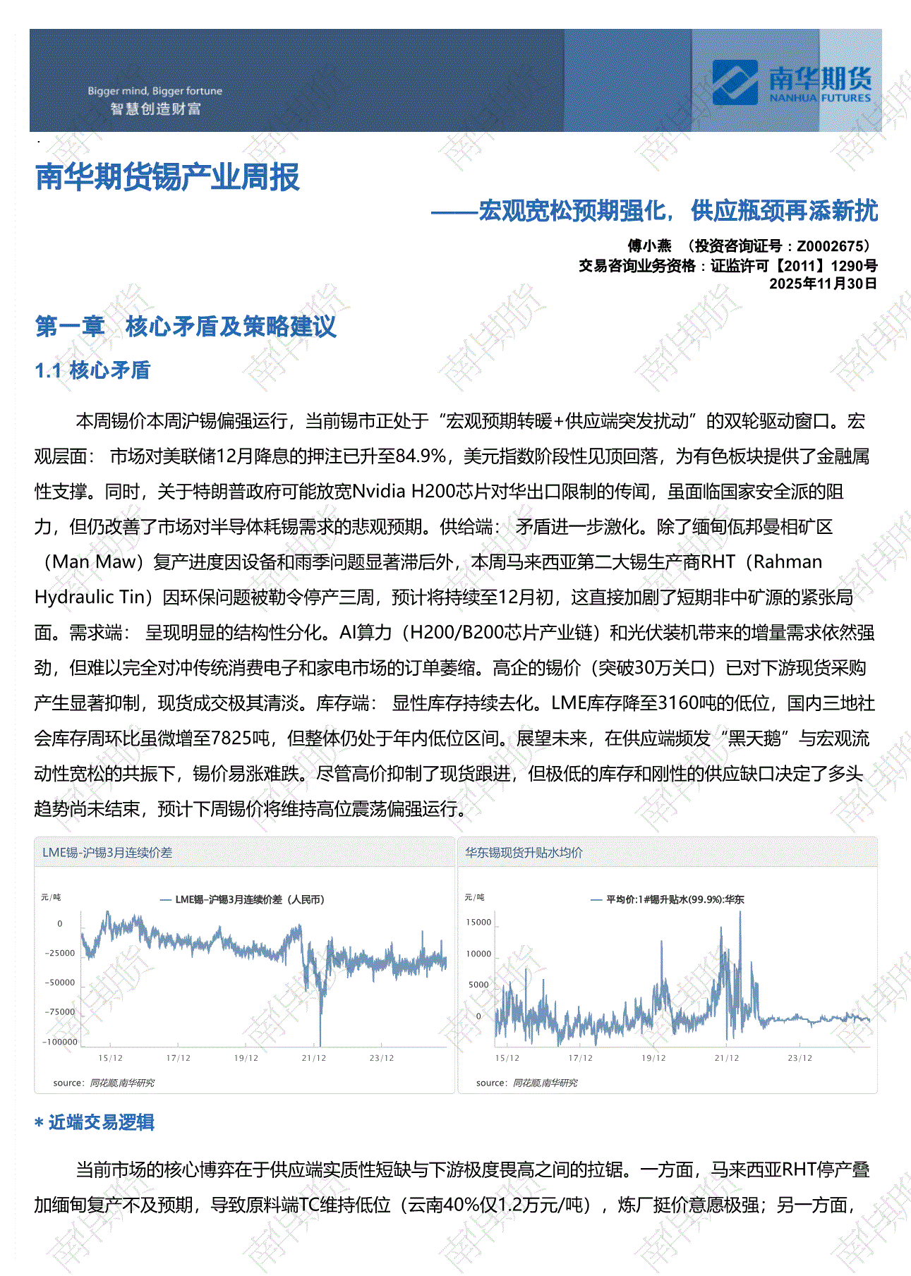 研报:南华期货-锡产业周报:宏观宽松预期强化,供应瓶颈再添新扰-251130