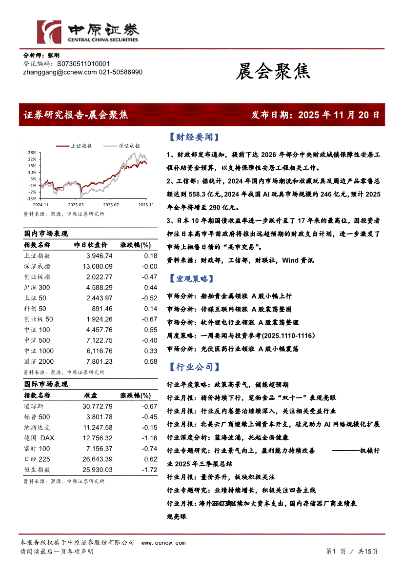 中原证券-市场分析:银行地产行业领涨,A股震荡整固-251120
