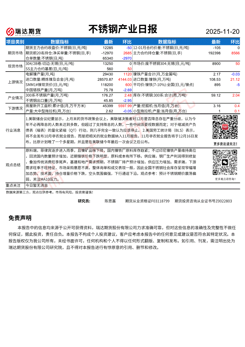 研报:瑞达期货-不锈钢产业日报-251120