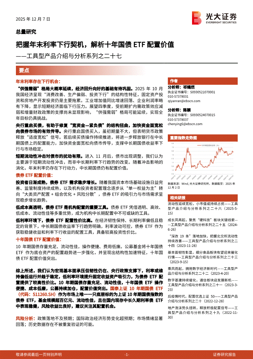 研报:光大证券-工具型产品介绍与分析系列之二十七:把握年末利率下行契机,解析十年国债ETF配置价值-251207