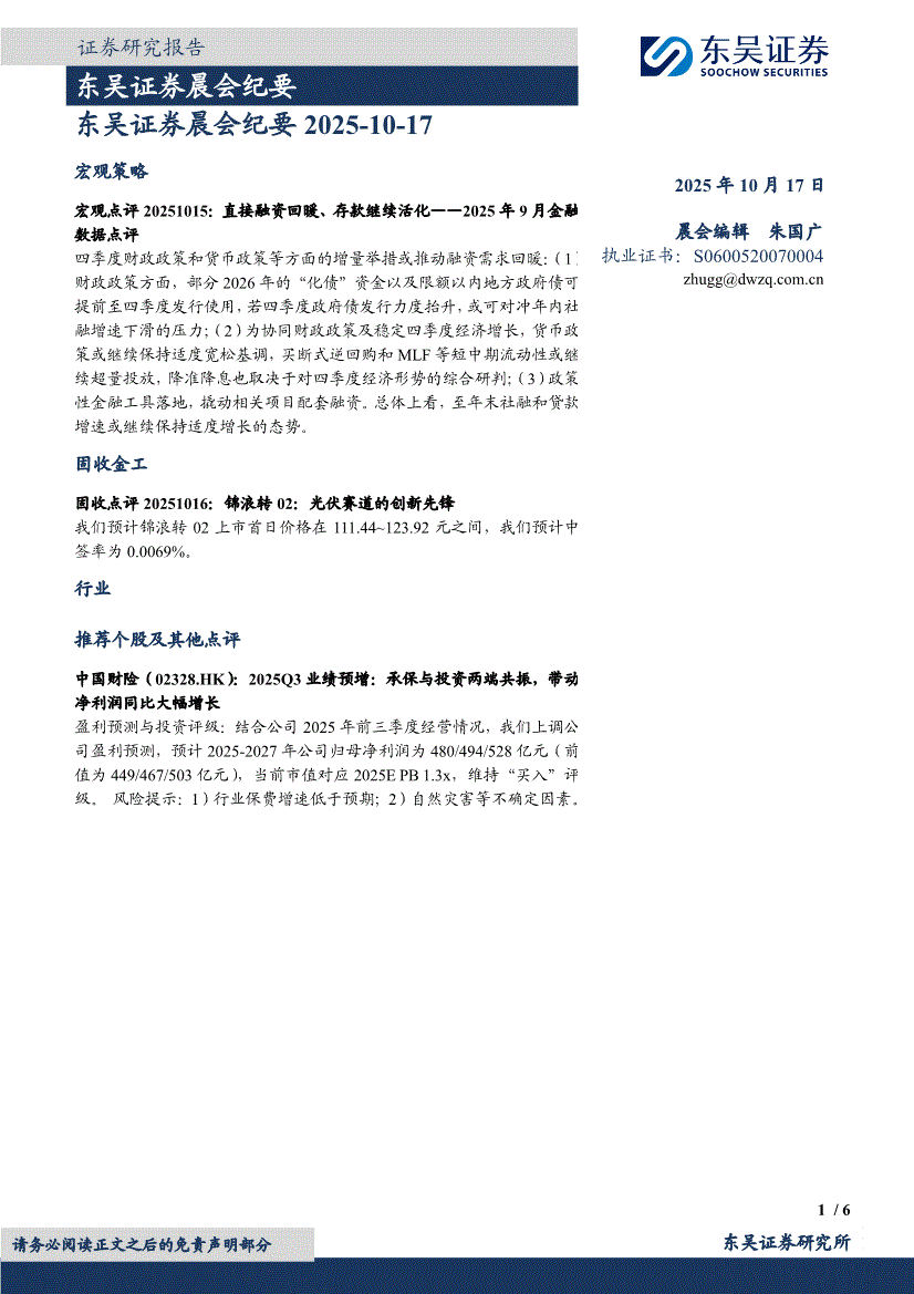研报:金宝搏官网188金宝搏-晨会纪要-251017