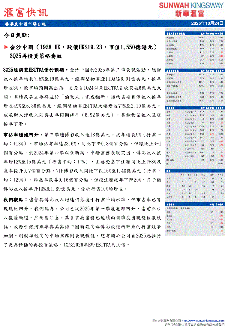 研报:新华汇富-汇富快讯:香港及中国市场日报-251024