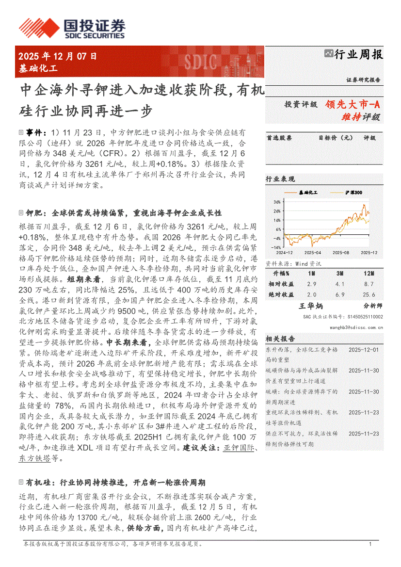 基础化工行业研报:国投证券-基础化工行业周报:中企海外寻钾进入加速收获阶段,有机硅行业协同再进一步-251207