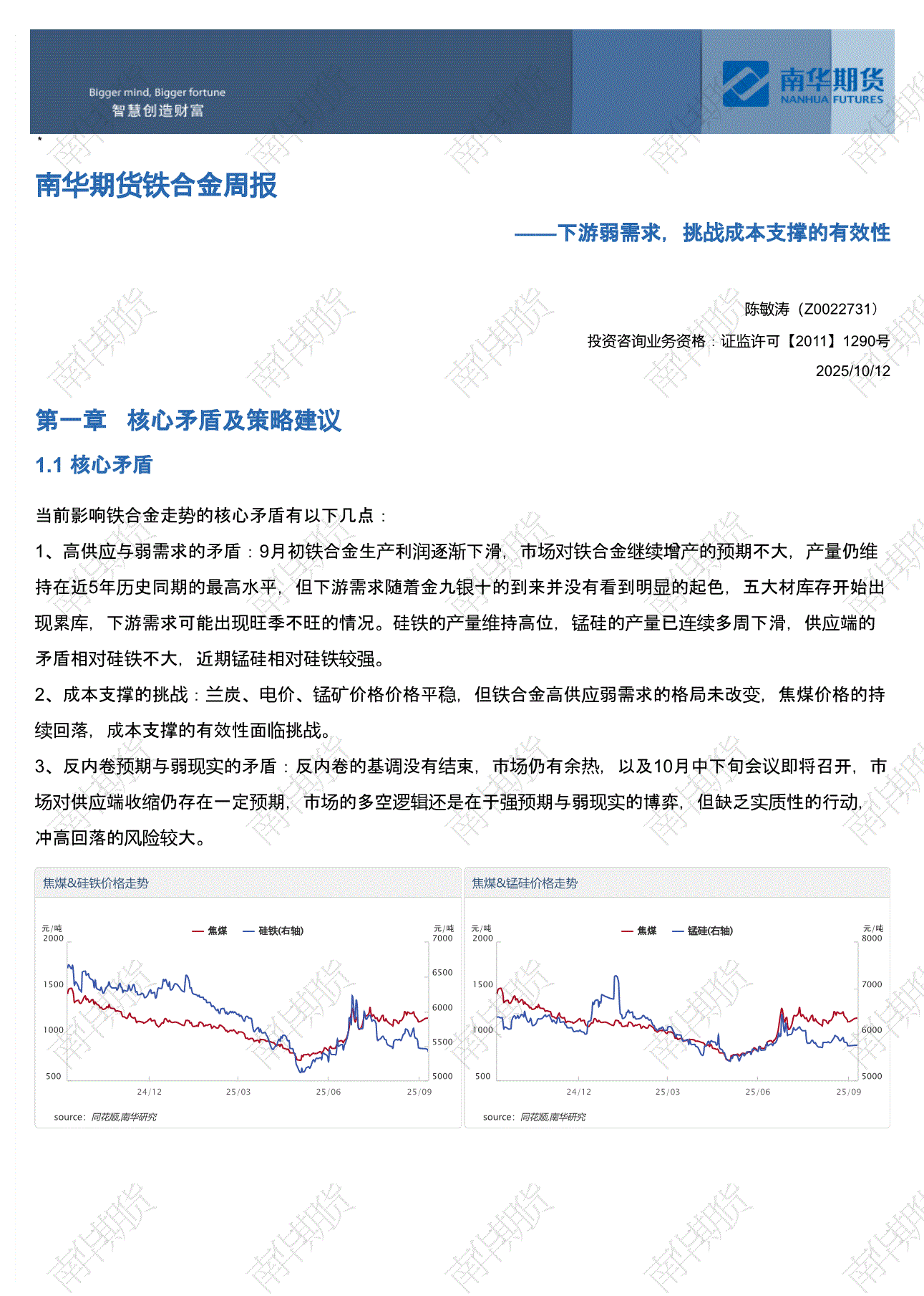 研报:南华期货-铁合金周报:下游弱需求,挑战成本支撑的有效性-251012