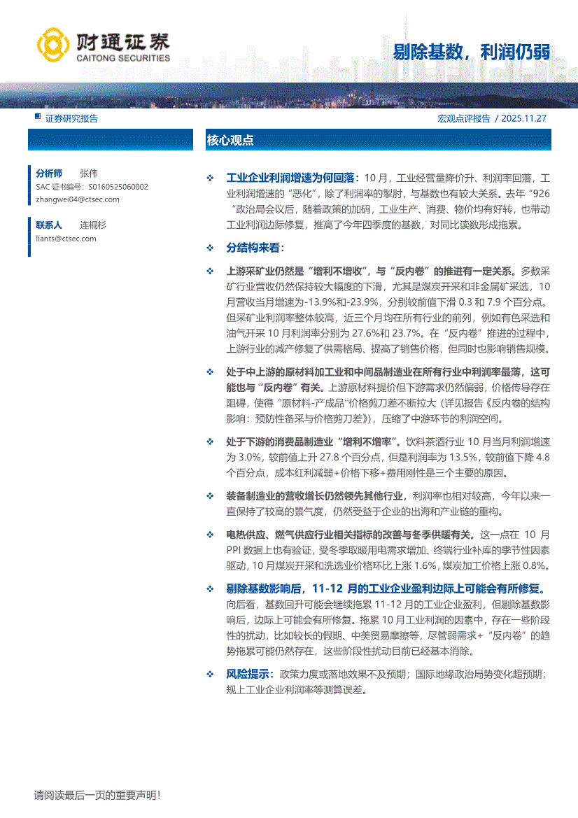 研报:财通证券-宏观点评报告:剔除基数,利润仍弱-251127
