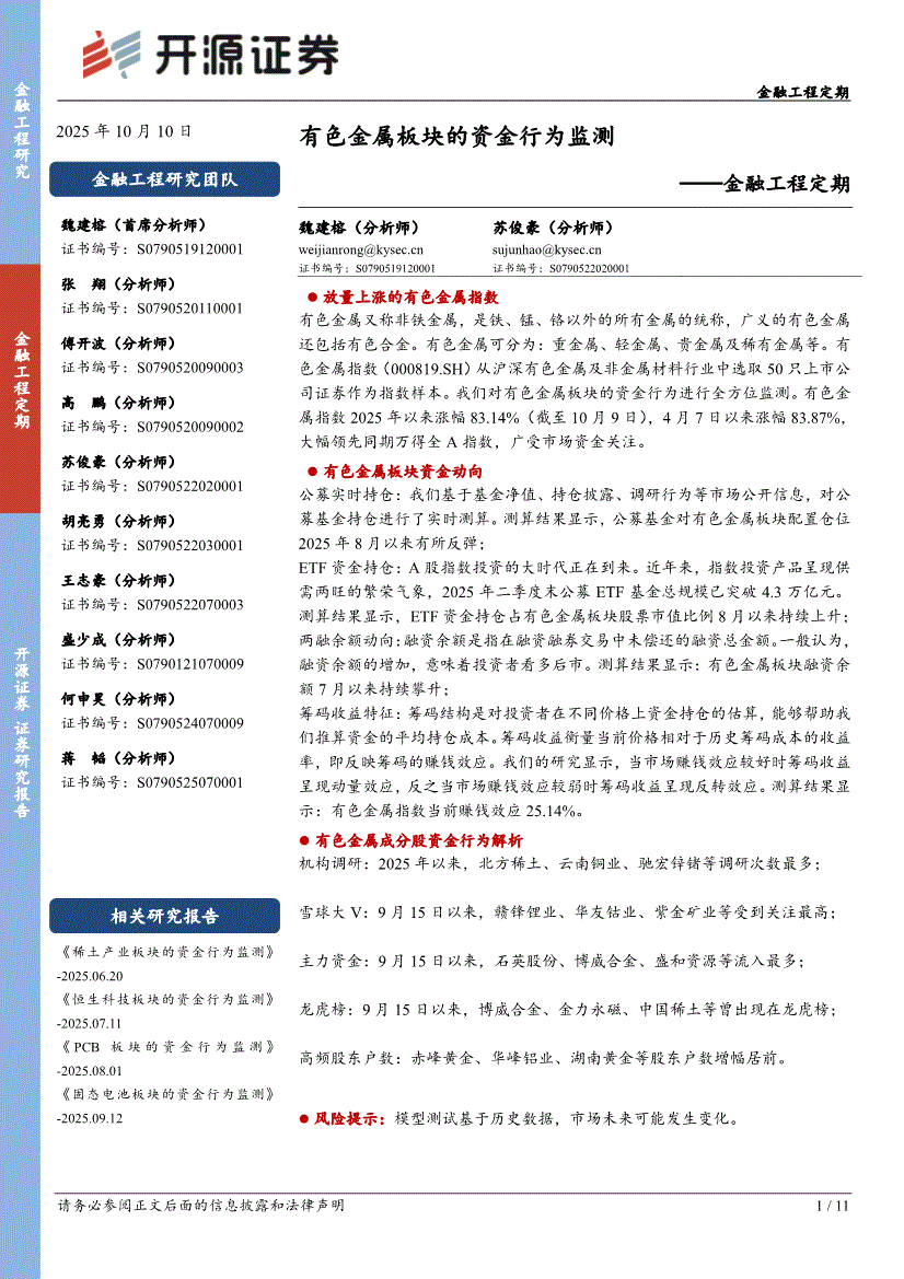 研报:开源证券-金融工程定期:有色金属板块的资金行为监测-251010