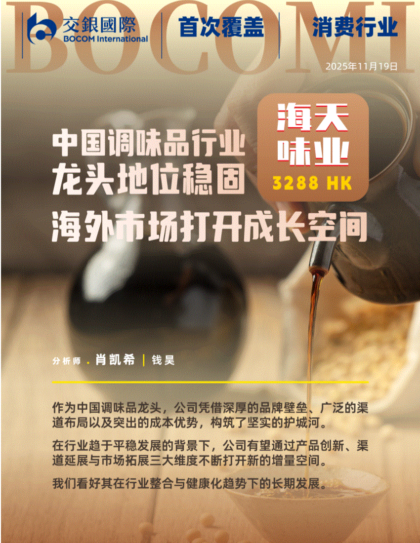 海天味业研报:交银国际-海天味业-3288.HK-中国调味品行业龙头地位稳固,海外市场打开成长空间;首予买入-251119