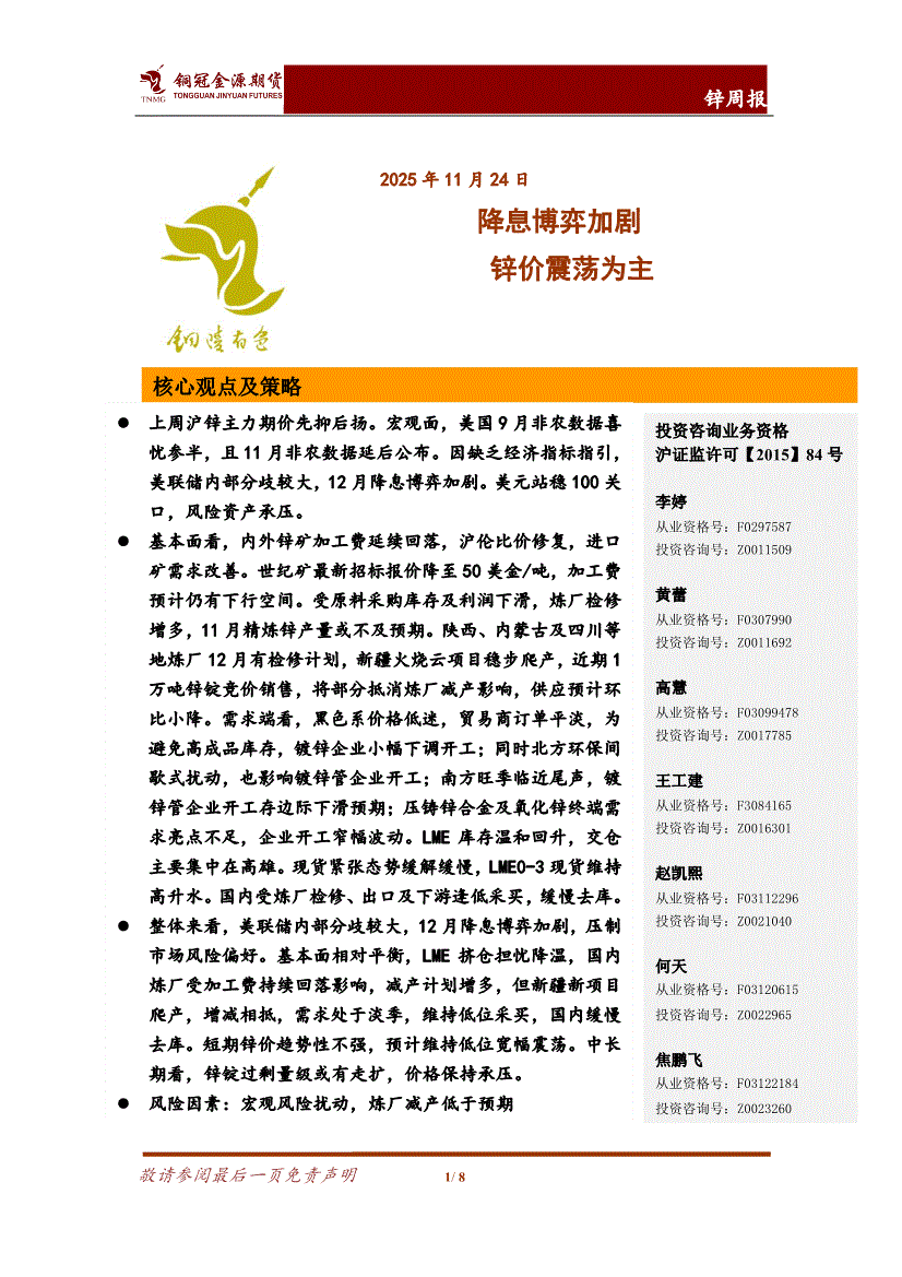 研报:铜冠金源期货-锌周报:降息博弈加剧,锌价震荡为主-251124