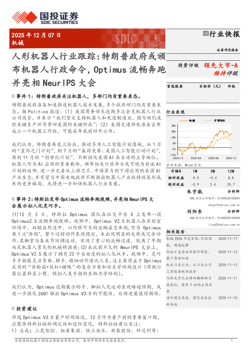 人形机器人行业研报:国投证券-人形机器人行业跟踪:特朗普政府或颁布机器人行政命令,Optimus流畅奔跑并亮相NeurlPS大会-251207