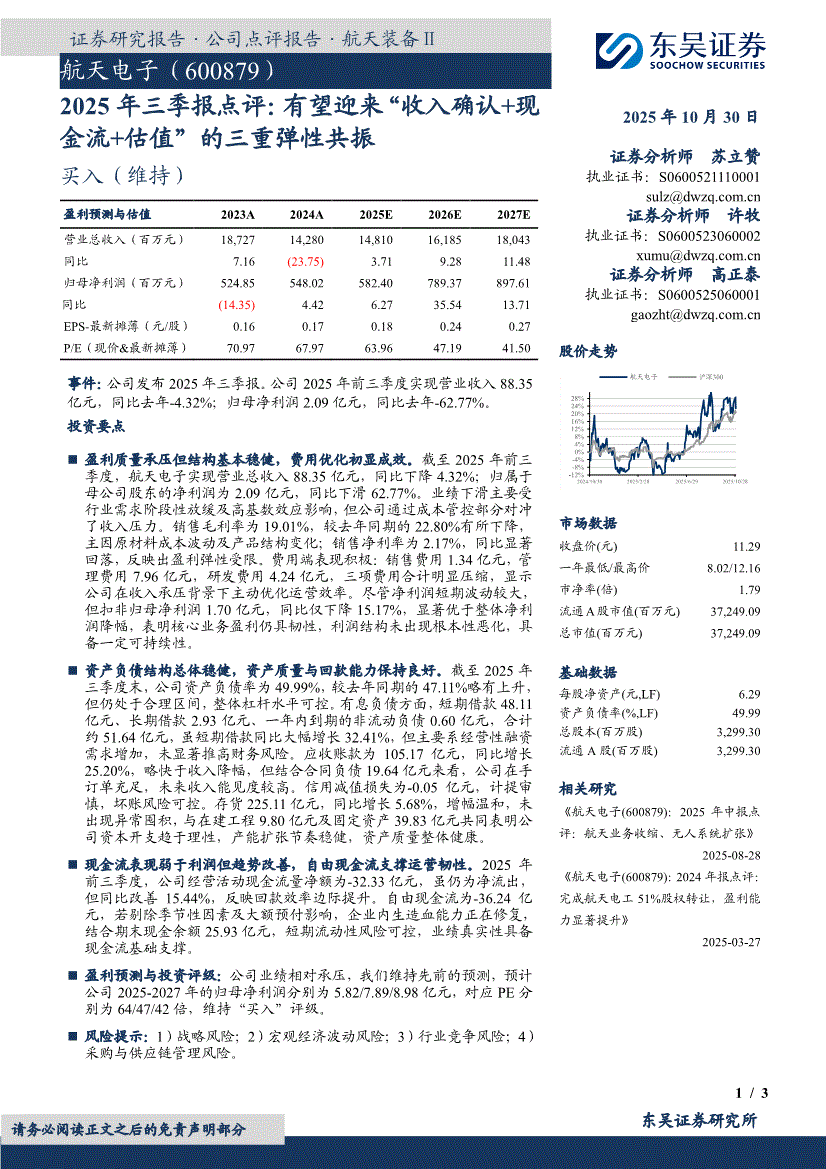 航天电子研报:金宝搏官网188金宝搏-航天电子-600879-2025年三季报点评:有望迎来“收入确认+现金流+估值”的三重弹性共振-251030
