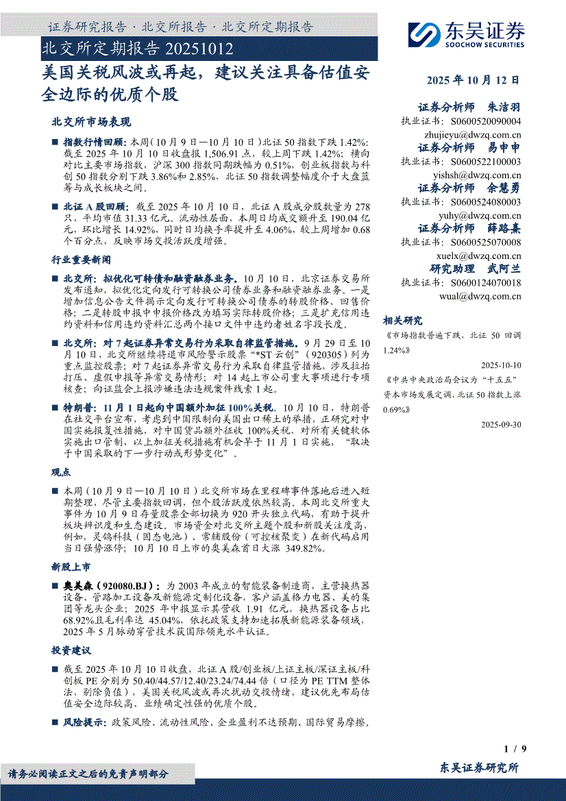 金宝搏官网188金宝搏-北交所定期报告:美国关税风波或再起,建议关注具备估值安全边际的优质个股-251012
