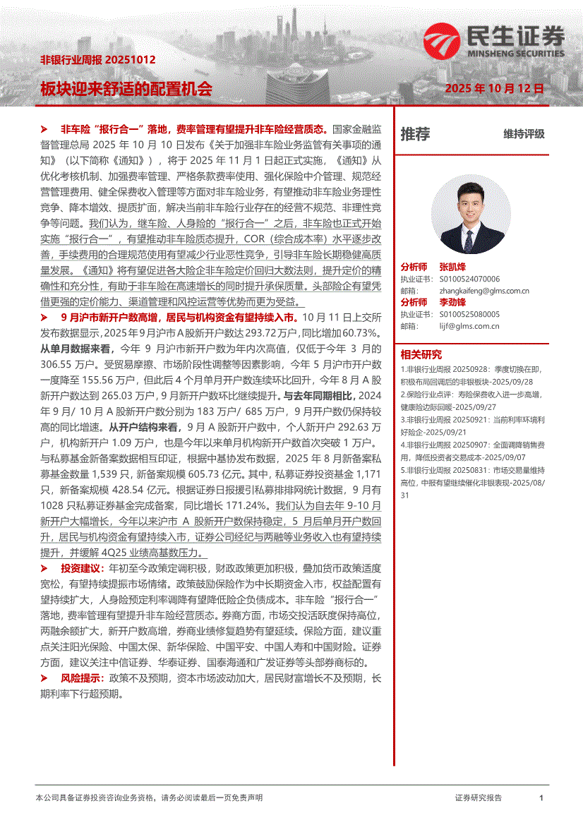 非银行业研报:民生证券-非银行业周报:板块迎来舒适的配置机会-251012