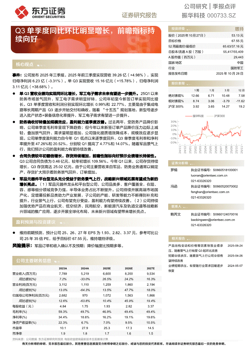 振华科技研报:东方证券-振华科技-000733-Q3单季度同比环比明显增长,前瞻指标持续向好-251028