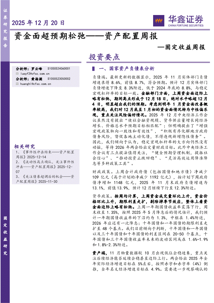 研报:华鑫证券-固定收益周报:资金面超预期松弛——资产配置周报-251220