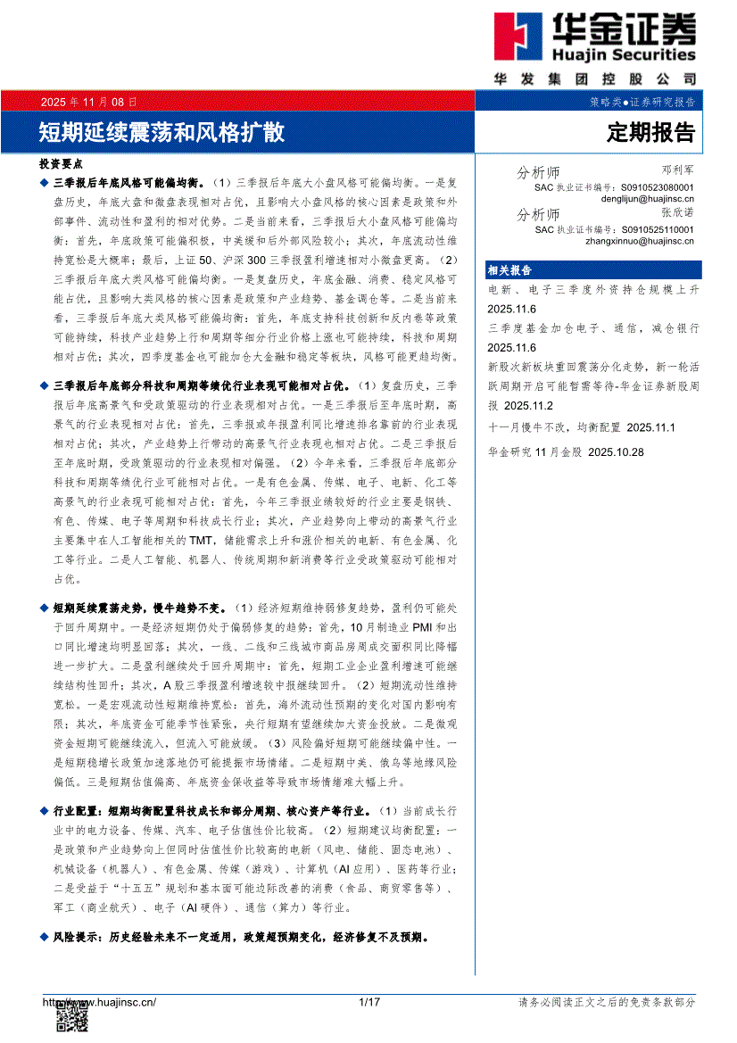 研报:华金证券-短期延续震荡和风格扩散-251108