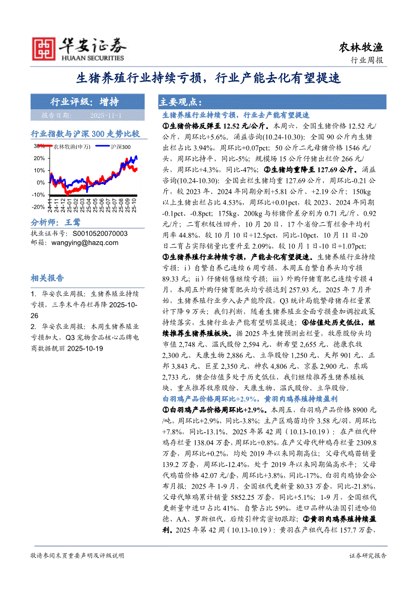 农林牧渔行业研报:华安证券-农林牧渔行业周报:生猪养殖行业持续亏损,行业产能去化有望提速-251101
