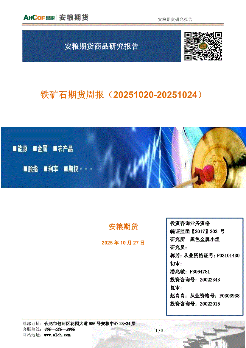 研报:安粮期货-铁矿石期货周报:综述,铁矿小幅累库,周内或以下行为主-251027