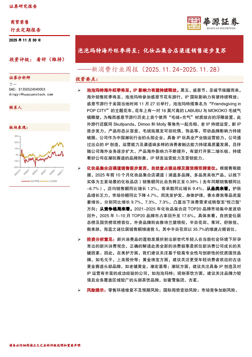 新消费行业研报:华源证券-新消费行业周报:泡泡玛特海外旺季将至;化妆品集合店渠道销售逐步复苏-251130