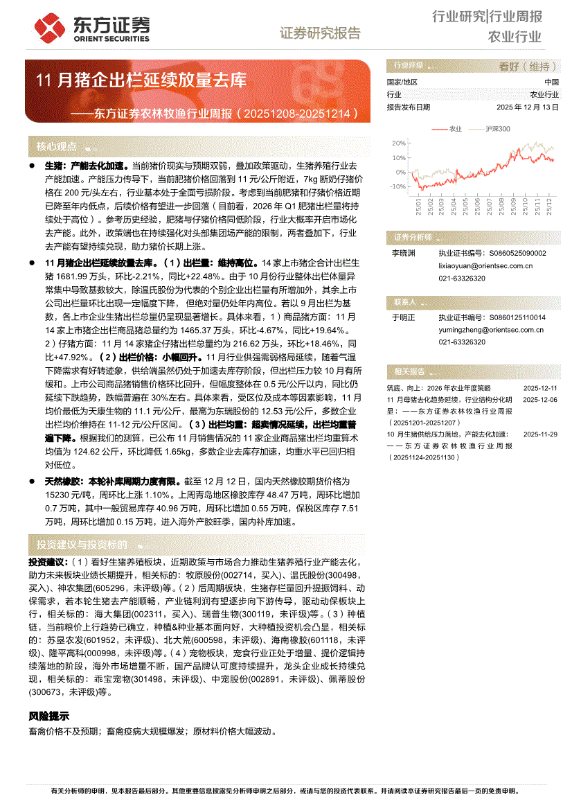 农林牧渔行业研报:东方证券-农林牧渔行业周报:11月猪企出栏延续放量去库-251213
