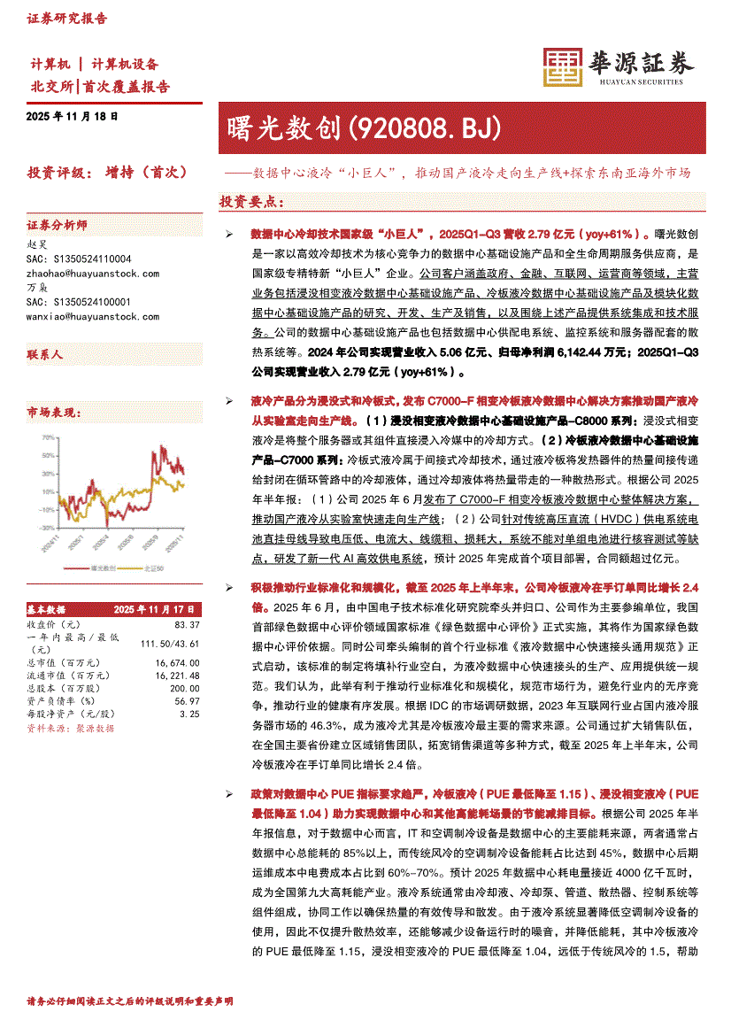 华源证券-曙光数创-920808-数据中心液冷“小巨人”,推动国产液冷走向生产线+探索东南亚海外市场-251118