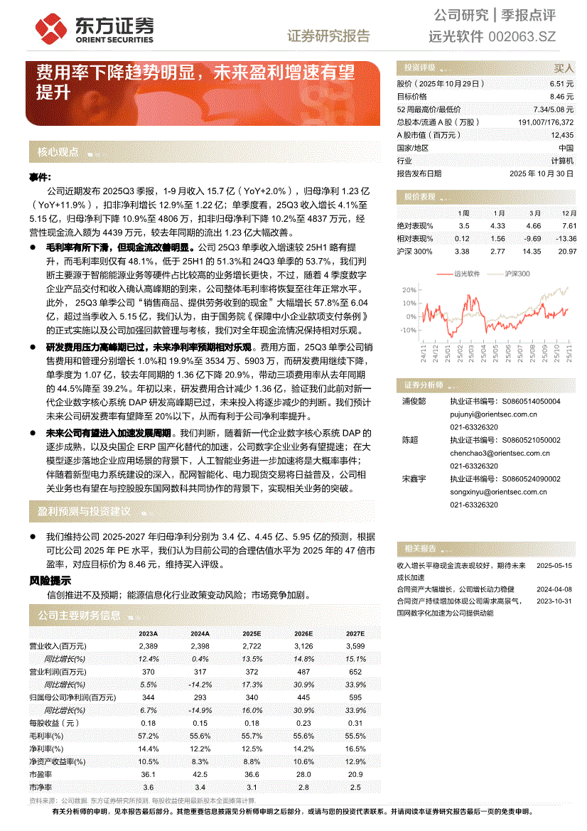 远光软件研报:东方证券-远光软件-002063-费用率下降趋势明显,未来盈利增速有望提升-251030