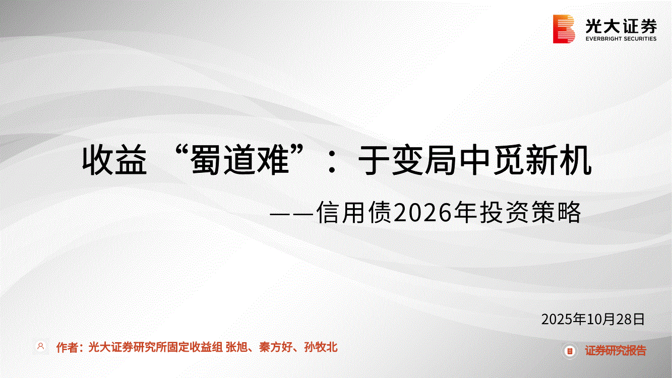 研报:光大证券-信用债2026年投资策略:收益“蜀道难”,于变局中觅新机-251028