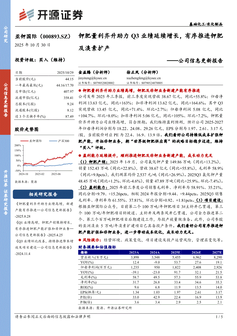 亚钾国际研报:开源证券-亚钾国际-000893-公司信息更新报告:钾肥量利齐升助力Q3业绩延续增长,有序推进钾肥及溴素扩产-251030