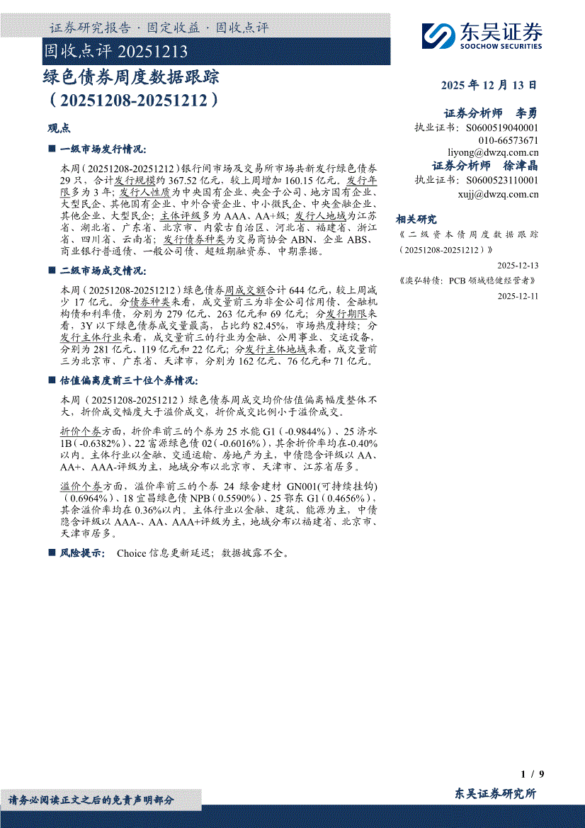 研报:金宝搏官网188金宝搏-固收点评:绿色债券周度数据跟踪-251213