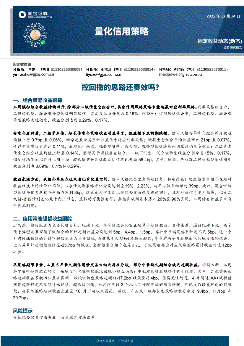 研报:国金证券-量化信用策略:控回撤的思路还奏效吗?-251214