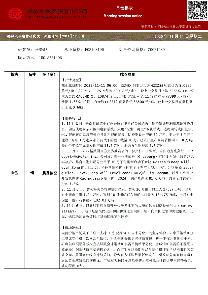 弘业期货-美联储政策难料,铜价承压回落-251117
