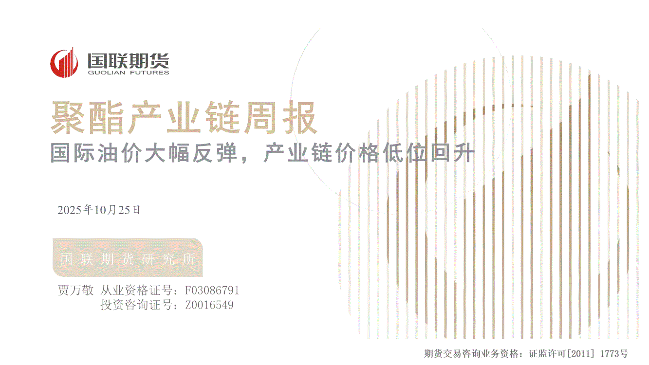 研报:国联期货-聚酯产业链周报:国际油价大幅反弹,产业链价格低位回升-251025