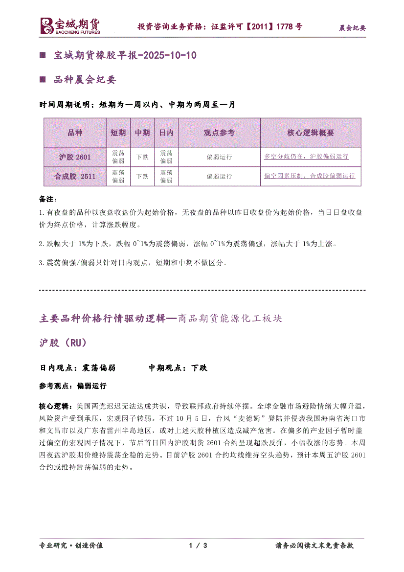 华龙期货-橡胶周报:缺乏驱动长假临近,盘面或将偏弱震荡-250929