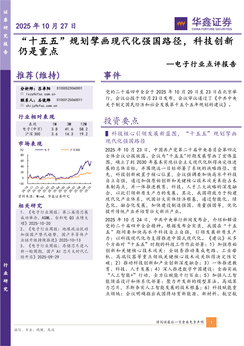 电子行业研报:华鑫证券-电子行业点评报告:“十五五”规划擘画现代化强国路径,科技创新仍是重点-251027