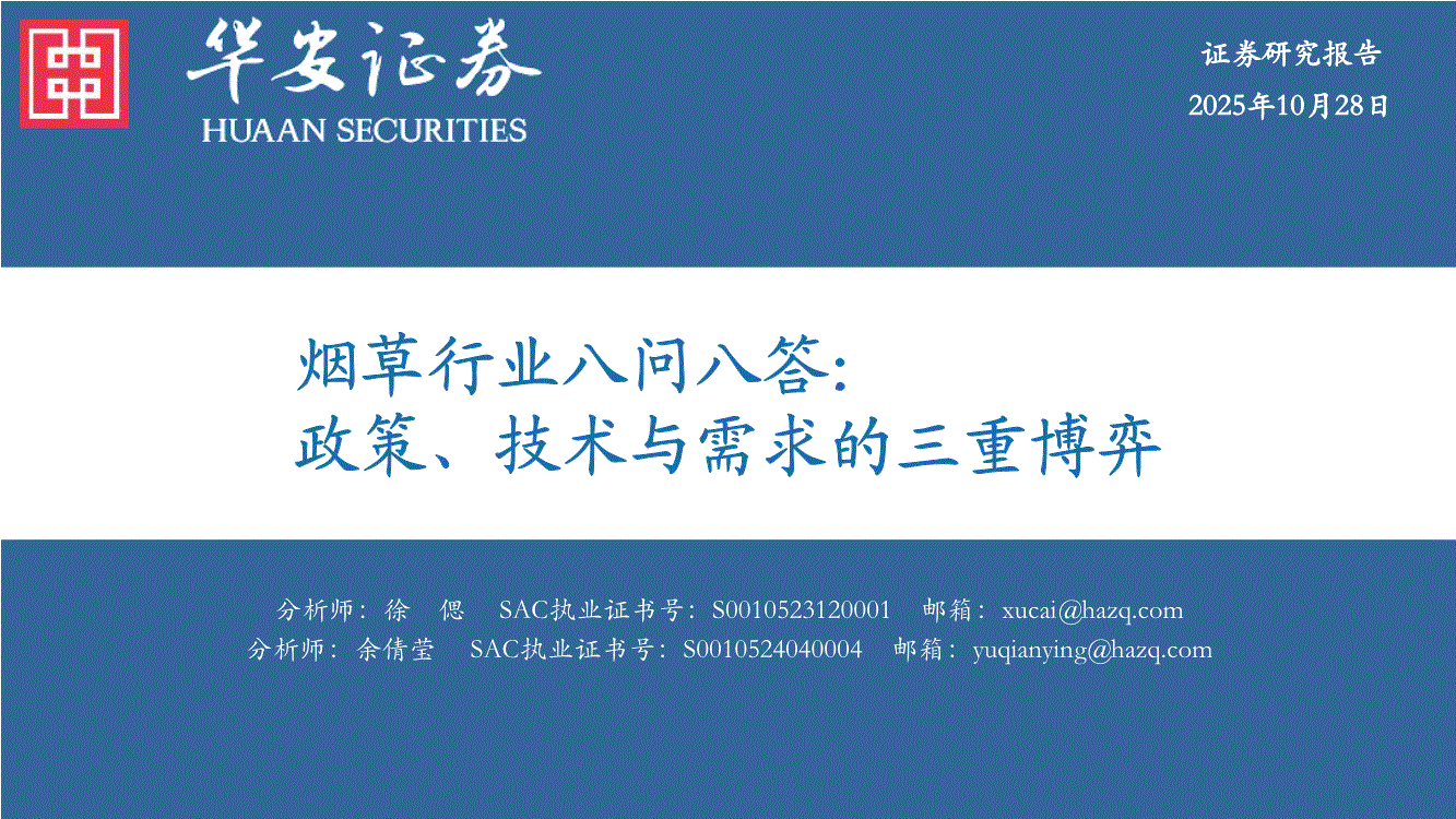 烟草行业研报:华安证券-烟草行业八问八答:政策、技术与需求的三重博弈-251028
