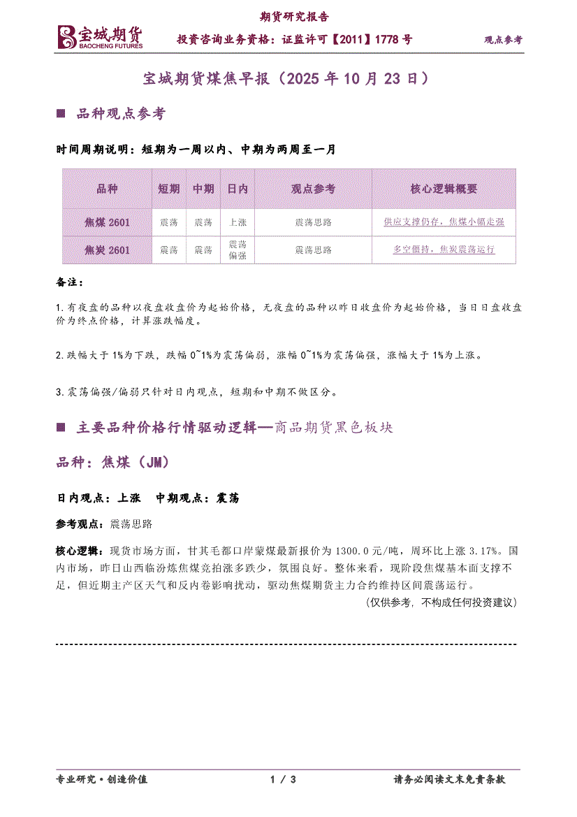 研报:宝城期货-煤焦早报-251023